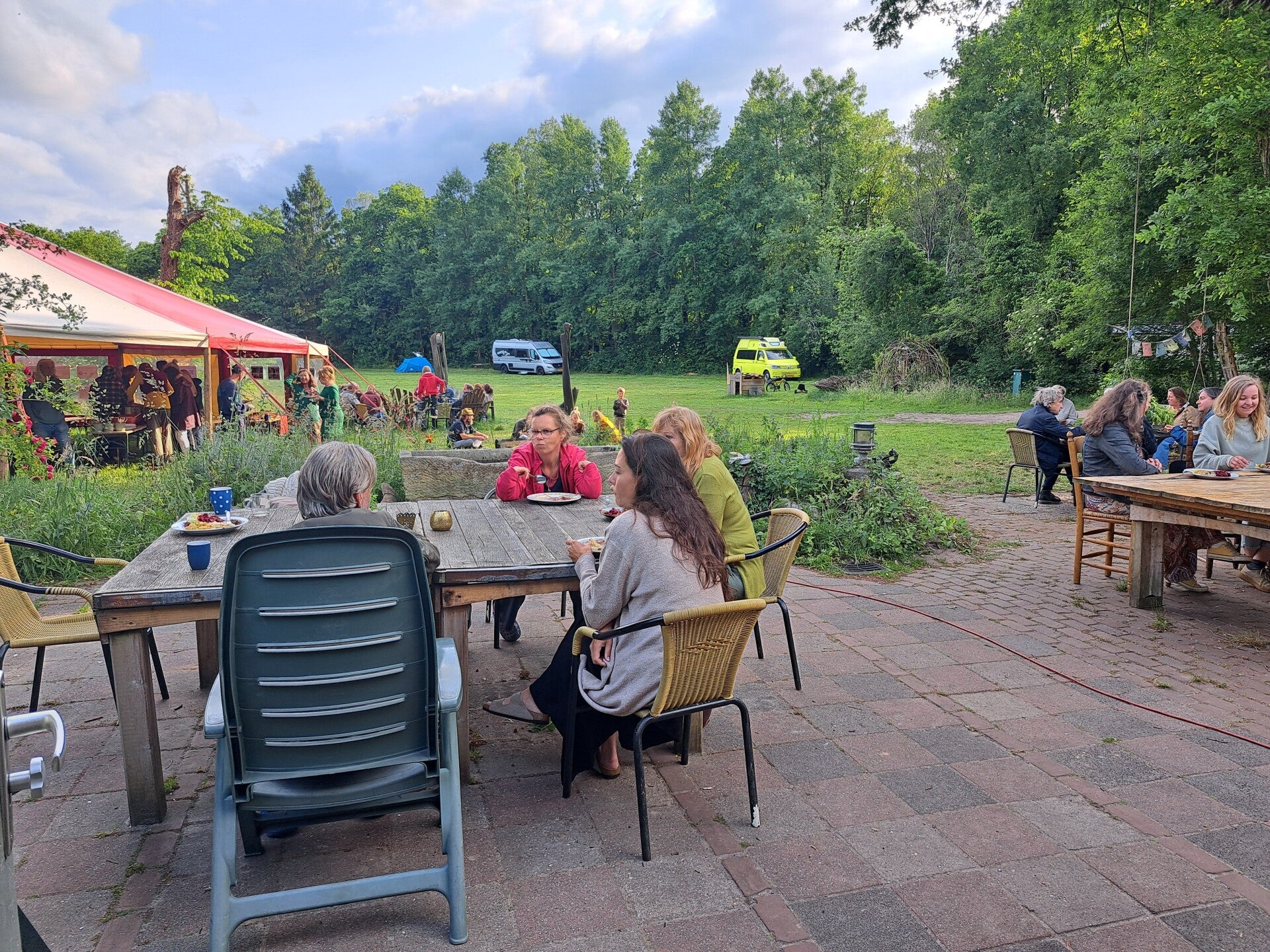 We starten ons bezoek met een diner, jullie nodigen de buurt uit en wij komen een diner op jullie erf/ in jullie buurt verzorgen. We leggen daarmee uit wat we komen doen en maken de buurt vast warm om actief te worden.
